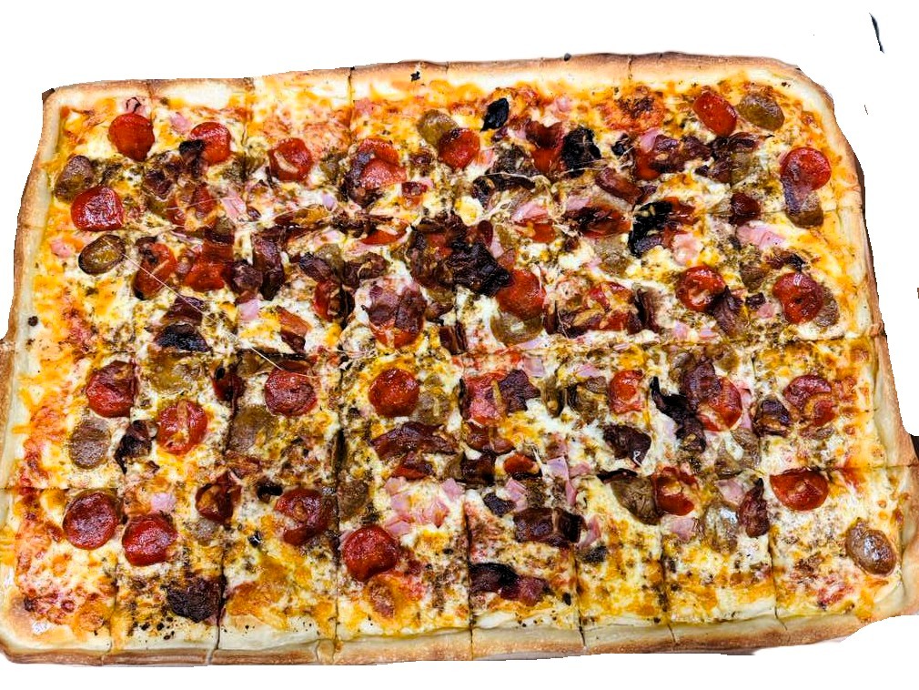 Imported ham, pepperoni, smoked bacon, Italian sausage & our own seasoned hamburger